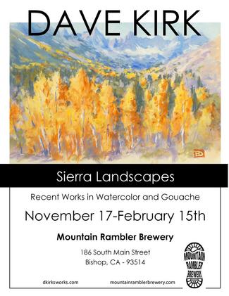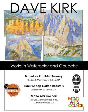 “I like to contemplate landscapes especially. I imagine that the effects and play of light upon the shapes and surfaces of the Eastern Sierra are as dynamic and fascinating as anywhere in the world and hence the subject for the majority of my work.” So writes Dave Kirk, an artist of the Sierra Nevada who in his work brings to our eyes what John Muir meant when he called these mountains the ‘range of light.’”